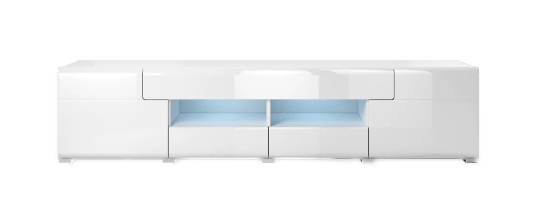 Adorn your living room with this long and luxurious TV cabinet that is graced with a glossy finish. Featuring two open compartments and a pair of shelves, there is plenty of space to store your favourite media equipment and gaming consoles. To make your life even easier, there is a comprehensive integrated system for cable management at the back of the cabinet so you can keep things neat and tidy by organizing all the electronic wires.