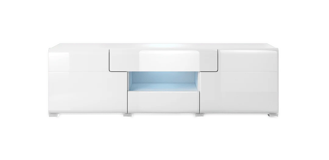 A vast and spacious cabinet featuring a display compartment guarded by a large door on either side and two variably-sized drawers. There are two designs available, white gloss and grey gloss, each of which combines with the San Remo oak design of the topmost drawer and the tinted glass of the display compartment to create a look fused with elegance, uniqueness and beauty.